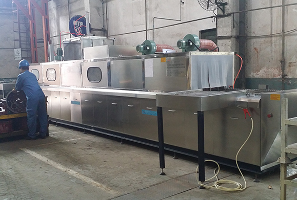 按照客户工件清洗要求设计制造,由减速电机带动推杆链条传动逐个工位进行清洗,多与超声波、喷淋、吹风、干燥等组合而成。全自动生产,清洗效率高,清洗质量一致,适应大批量生产。