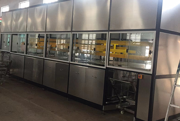 按照客户工件清洗要求设计制造,采用多臂式组合机械手操作,多臂输送,将所有的清洗篮一起输送到下一个工位,根据程序设定自动完成清洗工作,提高生产效率。多与过滤、鼓泡、旋转、干燥等工序组合而成。(自动上料——超声波粗洗—超声波精洗—热水漂洗—热水漂洗—热风干燥——热风干燥—一自动下料)